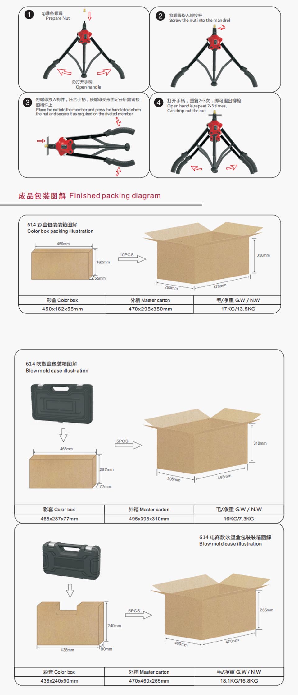 鉻鉬合金鋼鉚接桿,創(chuàng)新連動臂設計與手柄一起實現(xiàn)自動退出螺母,操作省時省力快速,人體工學設計弧形把手配合PVC柄套,操作更省力,使用更舒適。